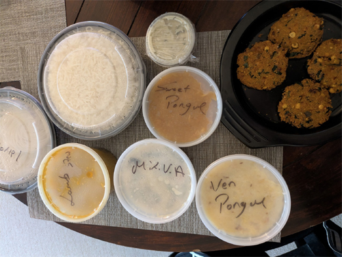 1/14/2026 (Wednesday, 12:27 PM): Pongal meals for the week! Thanks Spice Kraft!