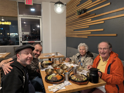 12/30/2025 (Tuesday, 03:49 PM): Lunch at Morenas Mexican with Wayne then rummikub at the house, he won. Noah came over and we went to Hanbop for Korean food and to Trader Joe's after. I helped fix his Apple phone account. Navah came over for New Years Eve and I went to a party! Diaries: Day 06